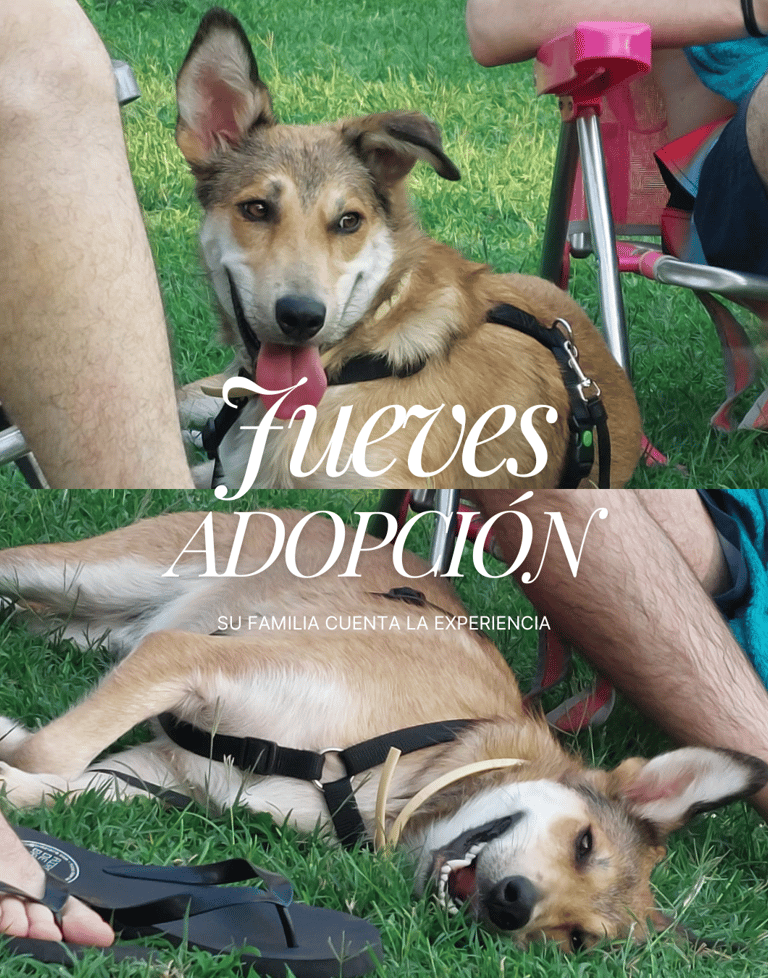 Adoptamos a Jueves en marzo, poco después de perder a nuestro anterior perrito, y aunque al principio dudábamos, ha sido una experiencia preciosa.